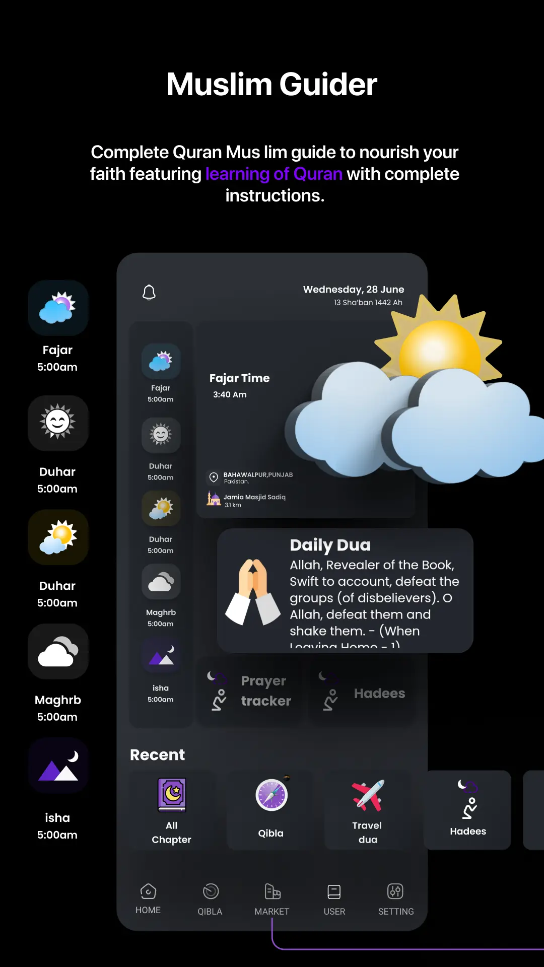 A complete Muslim guide to nourish your faith featuring learning of Quran with complete instructions of all Prayers, Hadeeth, Qibla direction, Mosque locator, Duas, Tasbeeh, Asmal ul husna, Ruqiyah shariya, Wudu and social platform which are splendidly categorized in a simple form.